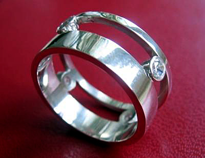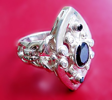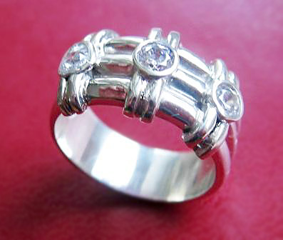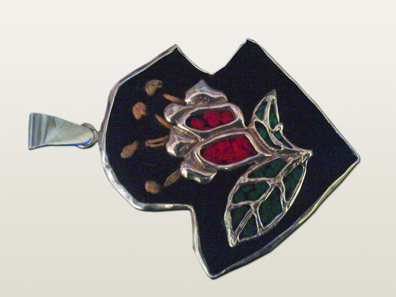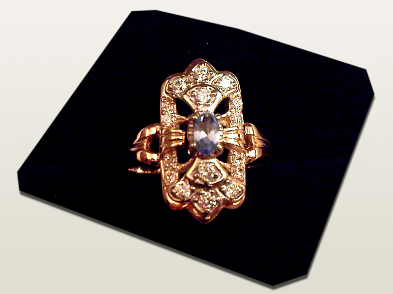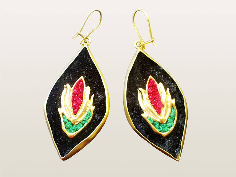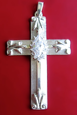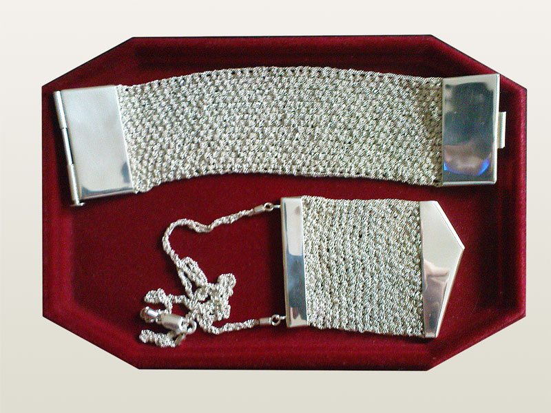 Zawieszenie a ksztalcie azurowej kokardki z czterech pętelek, spiętych rozeta.