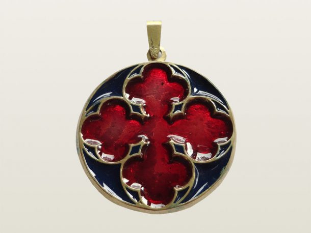 Medalion inspirowany motywem architektury poźnogotyckiej (czterolisć).